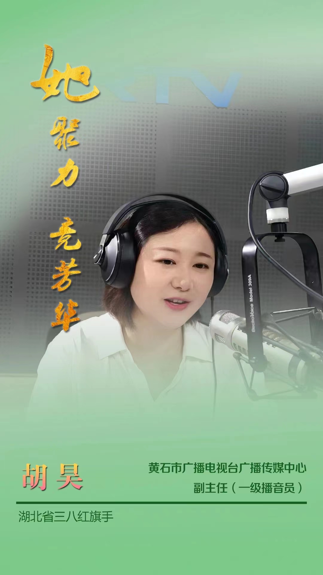? ? ? ? 胡昊,黃石市婦聯常委,黃石市廣播電視臺廣播傳媒中心副主任、一級播音員。作為媒體人,她愛崗敬業、樂于奉獻,積極發揮專業所長助力黃石婦女宣傳工作。